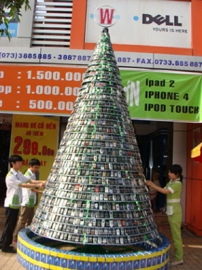 Dikutip detikINET dari Cellular-news, Selasa (13/12/2011), pohon dengan ketinggian 4,5 m ini disusun dari 2.500 unit ponsel bekas yang dikumpulkan sejak April dari seluruh pegawai pusat perbelanjaan yang berlokasi di provinsi Tien Giang tersebut.